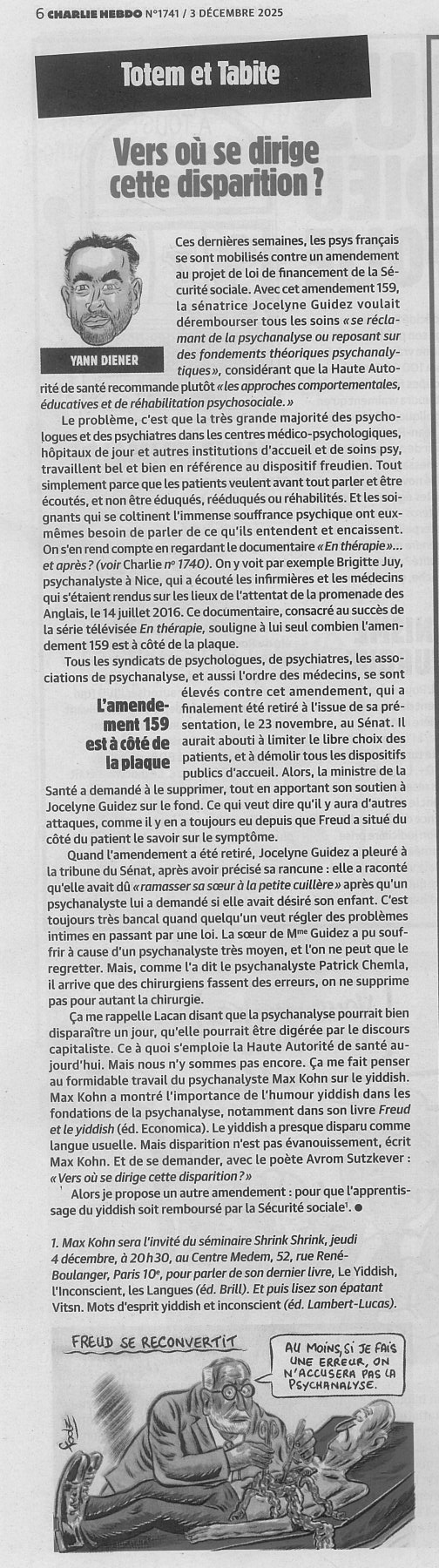 329. Shrink shrink. Psychanalyse et cultures. François Ardeven reçoit Max Kohn. Encore le yiddish ! Discussion à propos du livre de Max Kohn et Raphaël Koenig (dir.), « Le yiddish, l’inconscient, les langues », Leiden, Boston, Brill, 2025, Centre Medem – Arbeter Ring, jeudi 4 décembre 2025, 20h30, 52 rue René Boulanger 75010 Paris.(flyer)